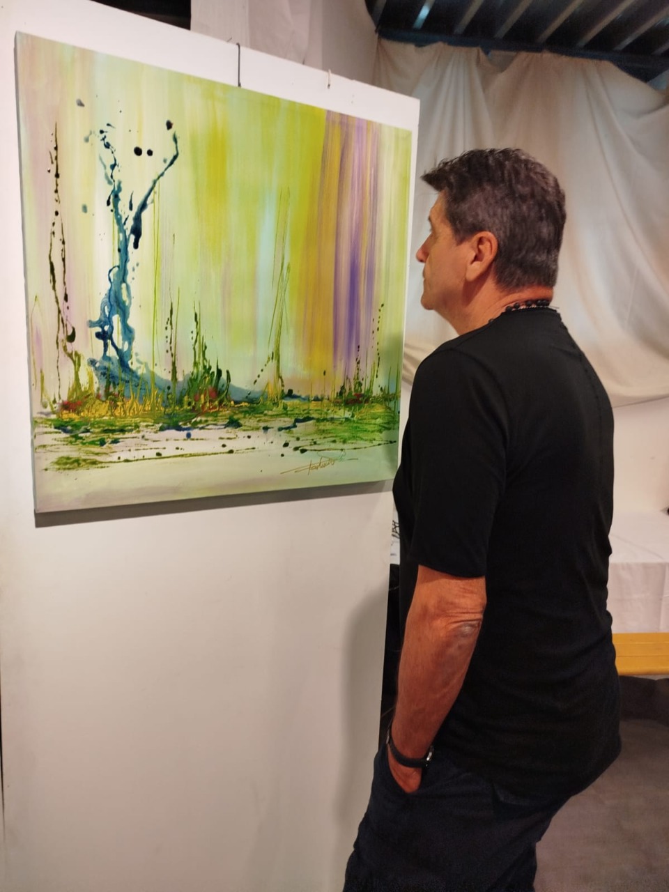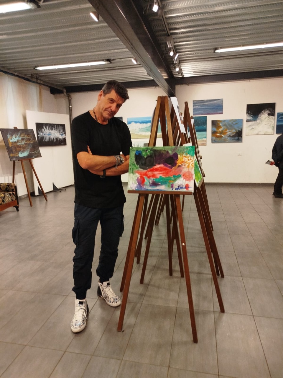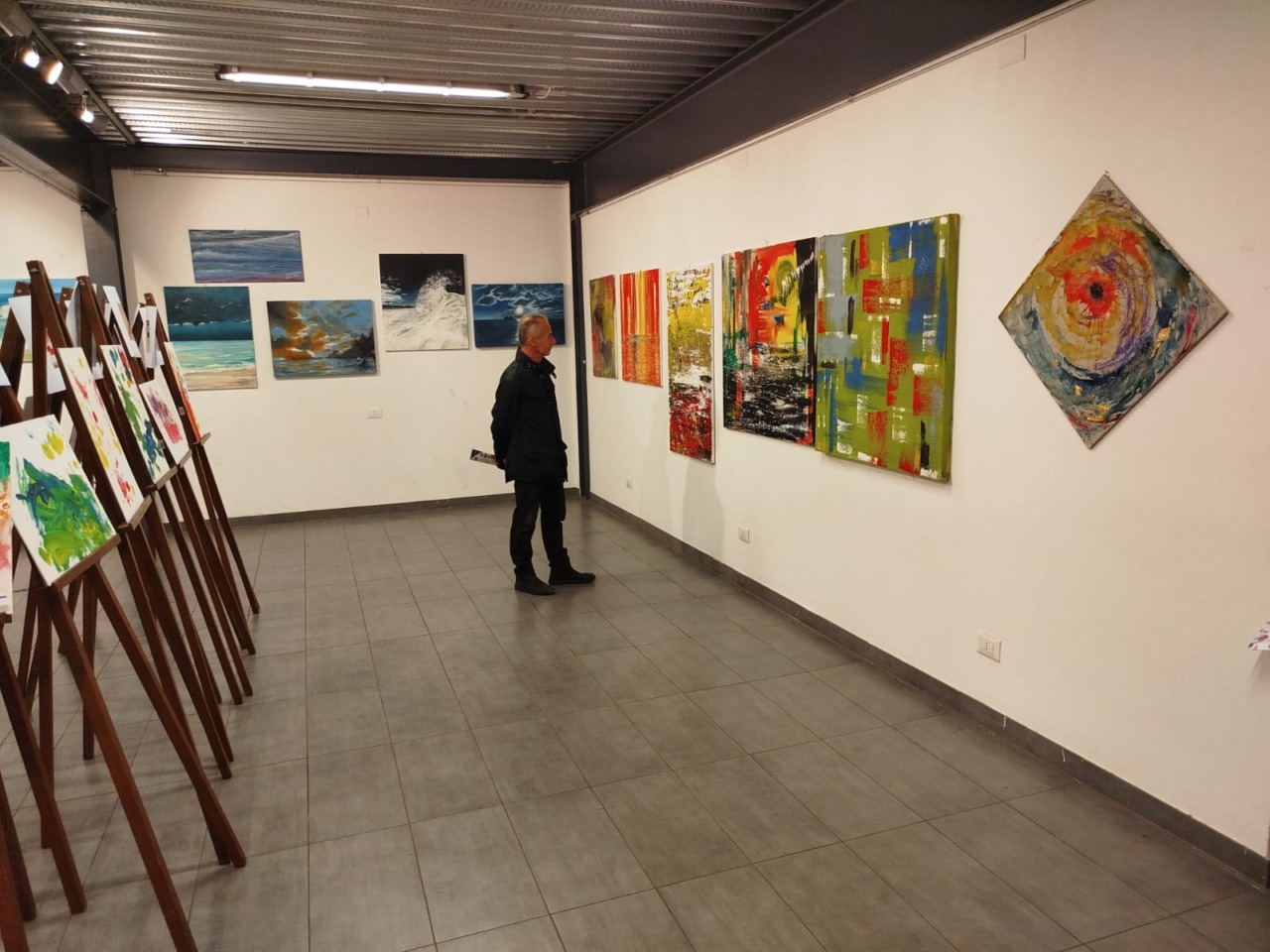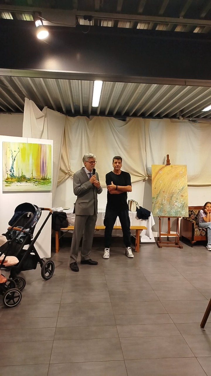 “È stata un’emozione unica – aggiunge il maestro –. Siamo riusciti a coinvolgere dieci bambini dai nove mesi ai tre anni. Vederli dipingere con i loro piedini è stato fantastico. Le loro tele sono state esposte accanto alle mie, creando un giro tondo artistico speciale.”